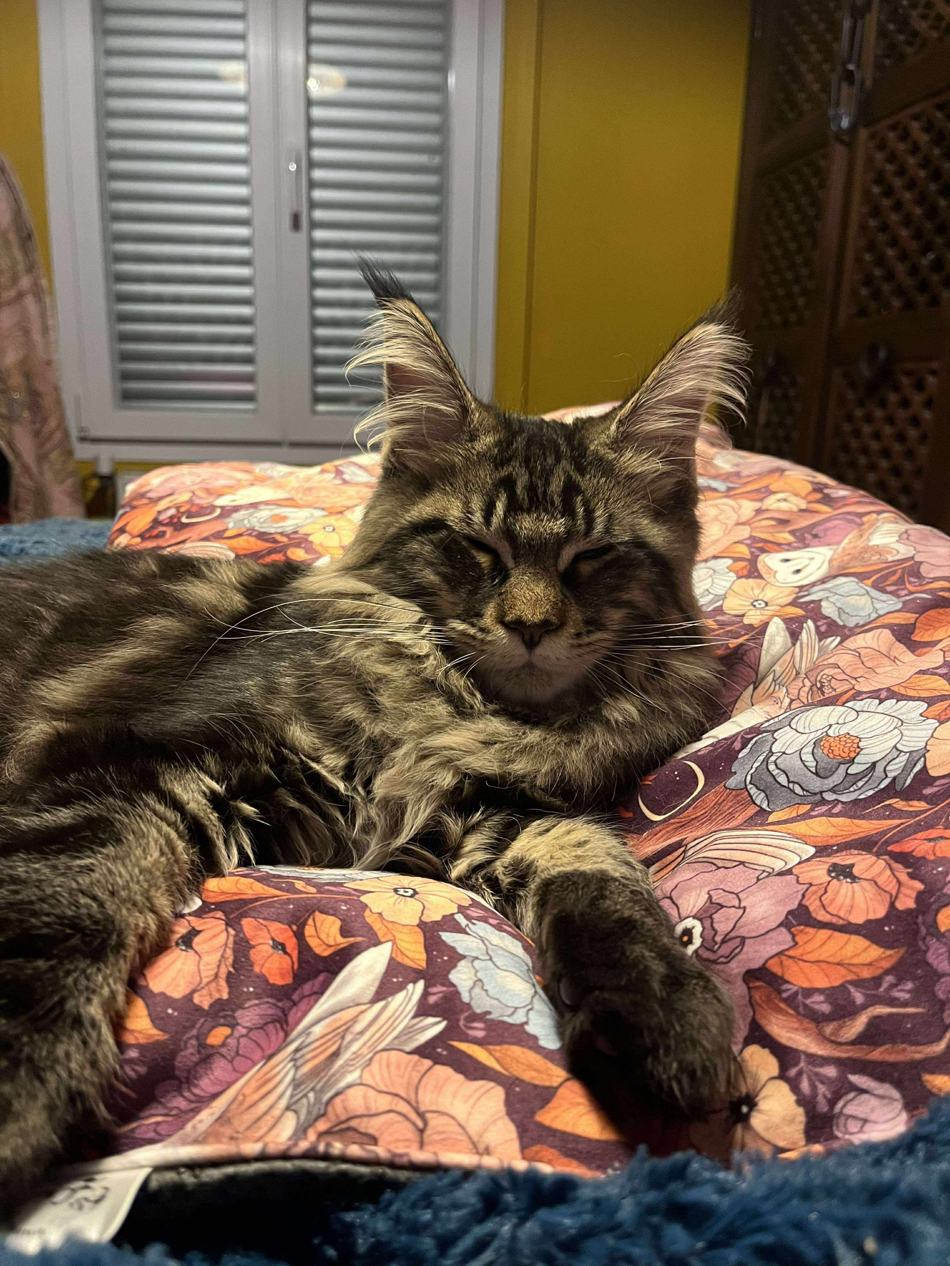 Arsène sur son tapis rembourré et anti-dérapant, en velours