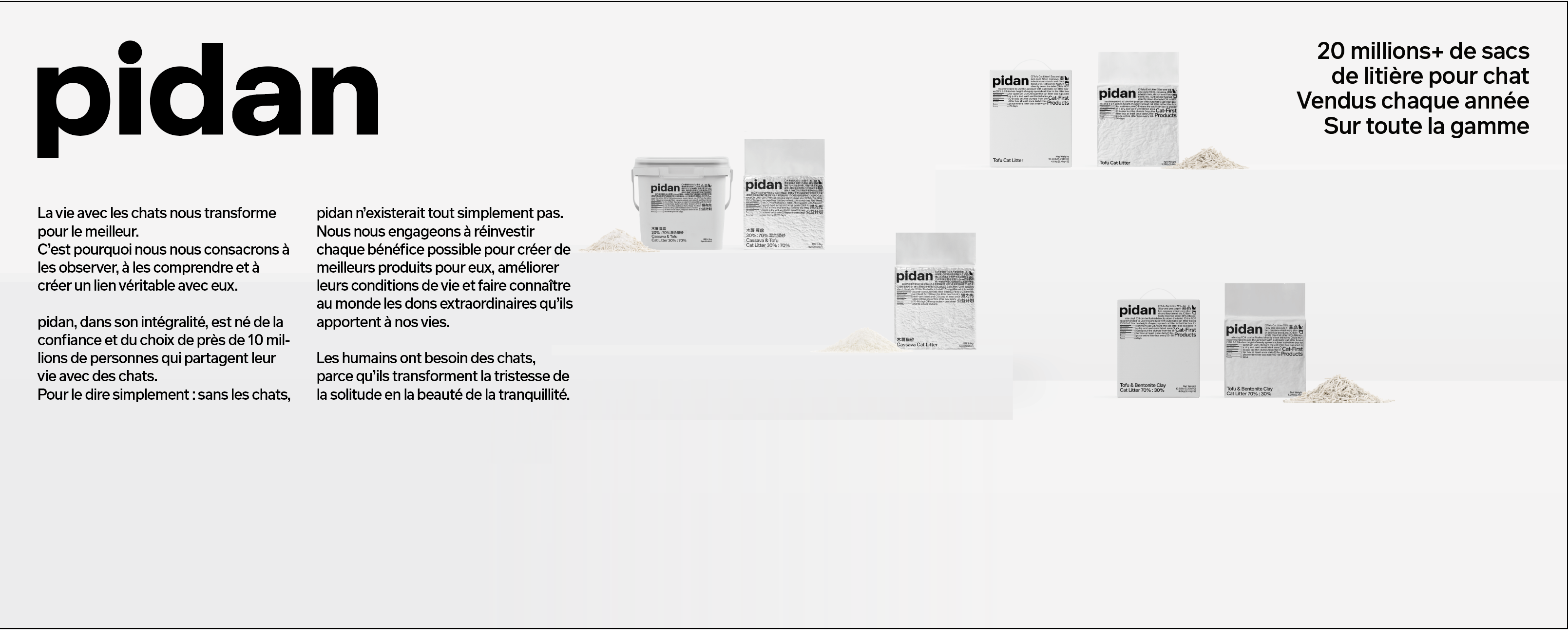 Nous nous engageons à améliorer le quotidien des chats et de leurs compagnons humains, en résolvant les défis courants des soins aux animaux grâce à un design réfléchi et une qualité supérieure. Nous sommes spécialisés dans la création de produits exceptionnels pour les propriétaires de chats, allant de notre litière de tofu primée à des bacs à litière magnifiquement conçus et des accessoires élégants qui s'intègrent parfaitement dans les intérieurs modernes. En nous choisissant, vous optez pour un mélange harmonieux de fonctionnalité, d'esthétique et de confort félin. Nous sommes fiers de notre innovation et de notre engagement envers le bien-être, garantissant que chaque produit non seulement répond, mais dépasse les attentes pour votre animal de compagnie bien-aimé.